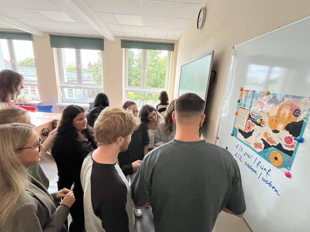 Spotkanie rozpoczęło się od serdecznego powitania na Dworcu Głównym w Krakowie, a wieczór upłynął na spacerze po urokliwych ulicach Starego Miasta. Piątek stał pod znakiem integracji – w murach ZSAB odbyła się emocjonująca gra typu escape game „Festiwal w niebezpieczeństwie”. Dzięki zaangażowaniu i świetnej współpracy polsko-niemieckim zespołom udało się rozwiązać wszystkie zagadki i uratować zagrożony „festiwal”. Gratulujemy! Po wspólnej zabawie uczniowie naszej szkoły, którzy w maju odbywali praktyki we Frankfurcie, oprowadzili gości po budynku ZSAB oraz Centrum Kształcenia Zawodowego, dzieląc się swoimi doświadczeniami.