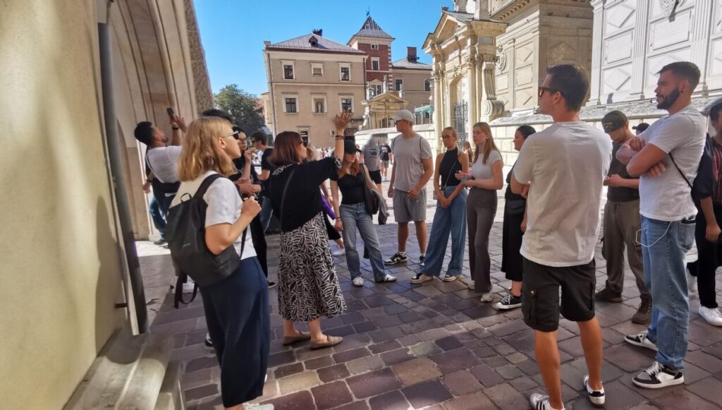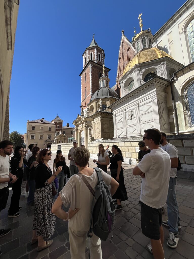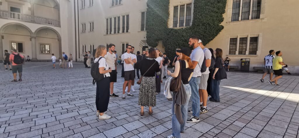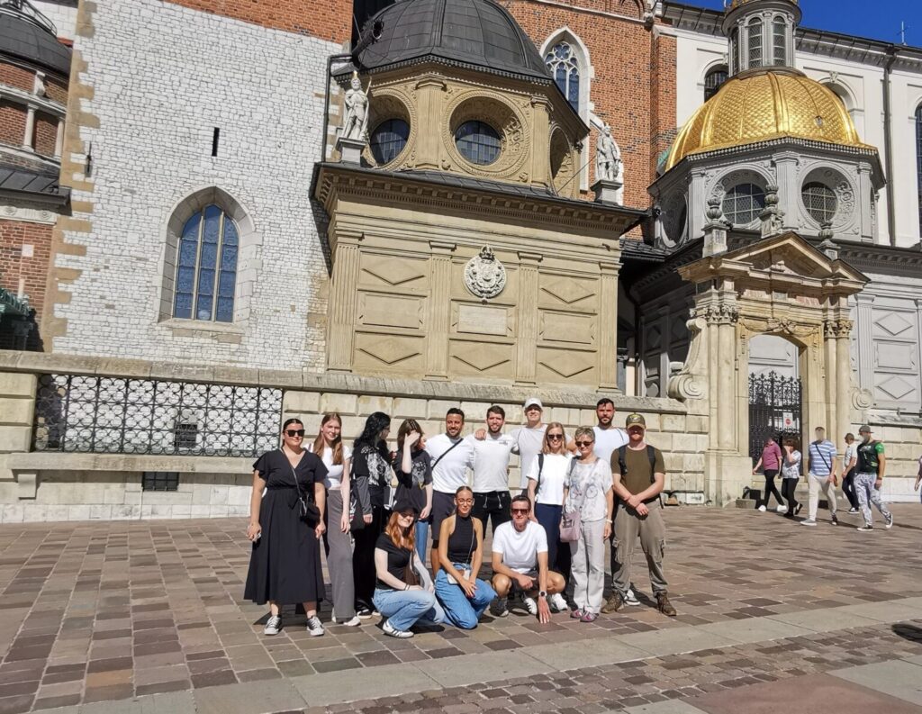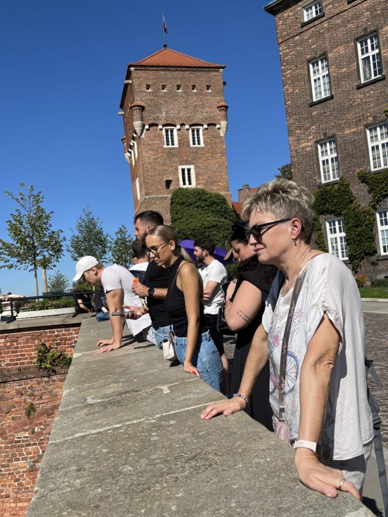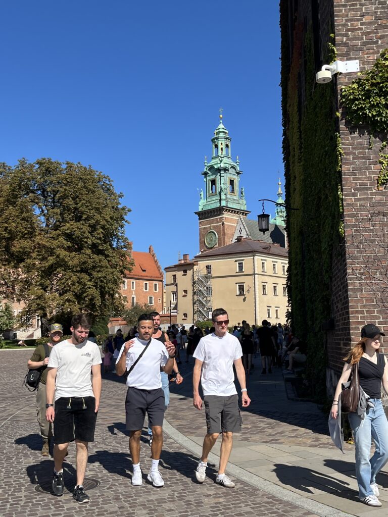 Popołudnie spędziliśmy dzięki uprzejmości Wydziału Edukacji i Projektów Edukacyjnych Urzędu Miasta Krakowa w najstarszej w Polsce Kopalni Soli w Bochni. Nawet kilkadziesiąt metrów po ziemią nie obyło się bez szybkiego meczu piłki nożnej. Sobota była czasem wyjątkowej i trudnej lekcji historii – młodzież odwiedziła Miejsce Pamięci i Muzeum Auschwitz-Birkenau. Niedzielne południe z kolei przyniosło lżejsze wrażenia: wspólne zwiedzanie Krakowa z panią przewodnik, możliwe dzięki wsparciu Biura Współpracy Zagranicznej Kancelarii Prezydenta Miasta Krakowa