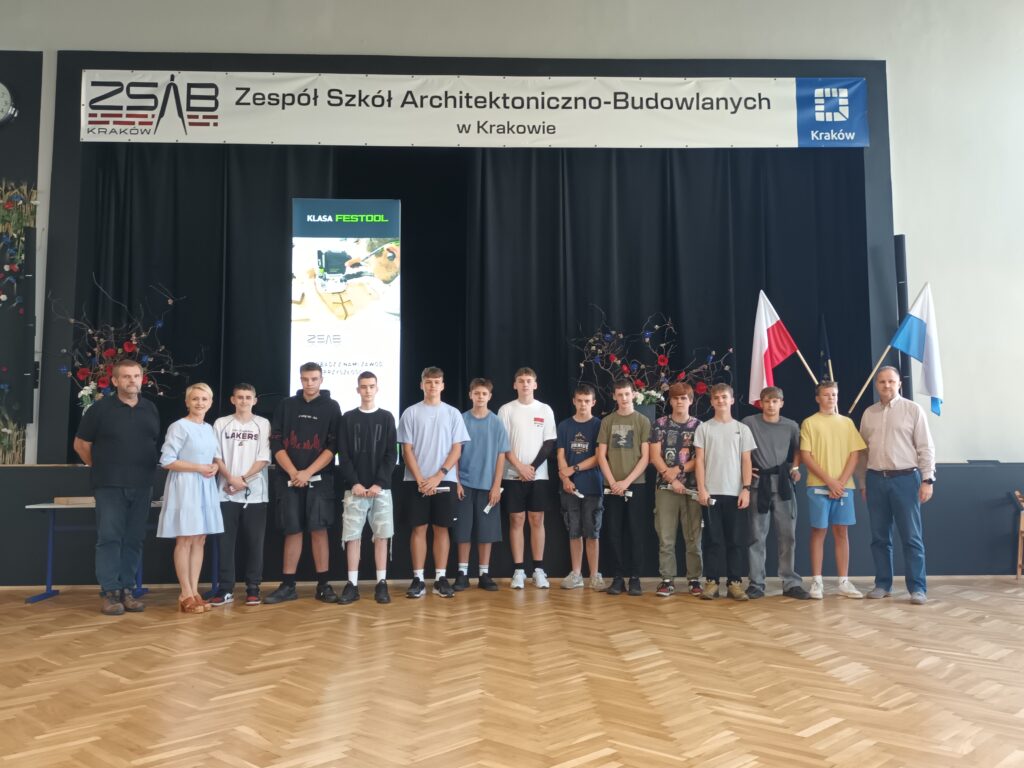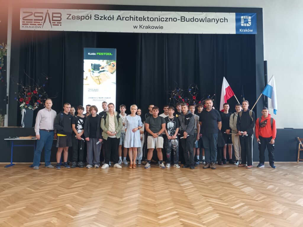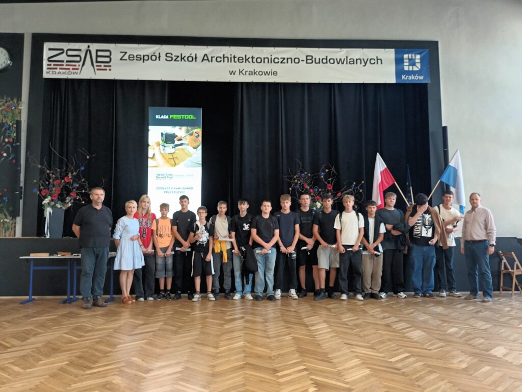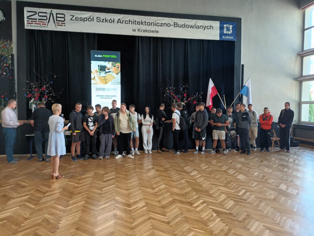 Dnia 10 września 2025 r. w naszej szkole odbyło się miłe wydarzenie. Uczniowie klas pierwszych o profilach: technik technologii drewna (kl. I D), technik robót wykończeniowych (kl. I W), stolarz (kl. 1s), monter zabudowy i robót wykończeniowych w budownictwie (kl. 1z) będący pod opieką firmy FESTOOL otrzymali prezenty startowe pomocne w ich karierze edukacyjnej oraz zawodowej. W imieniu patrona – firmy FESTOOL pakiety startowe z życzeniami dalszego rozwoju przekazała Pani Dyrektor Dorota Matlęga.