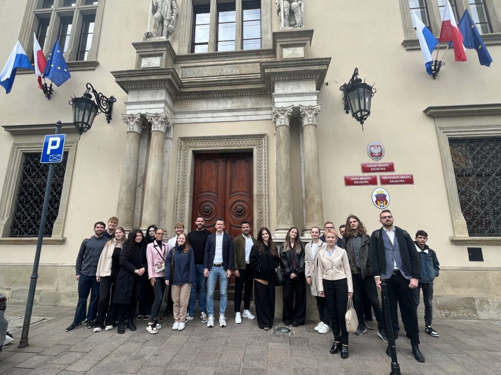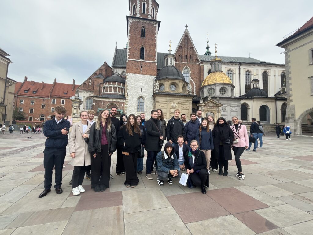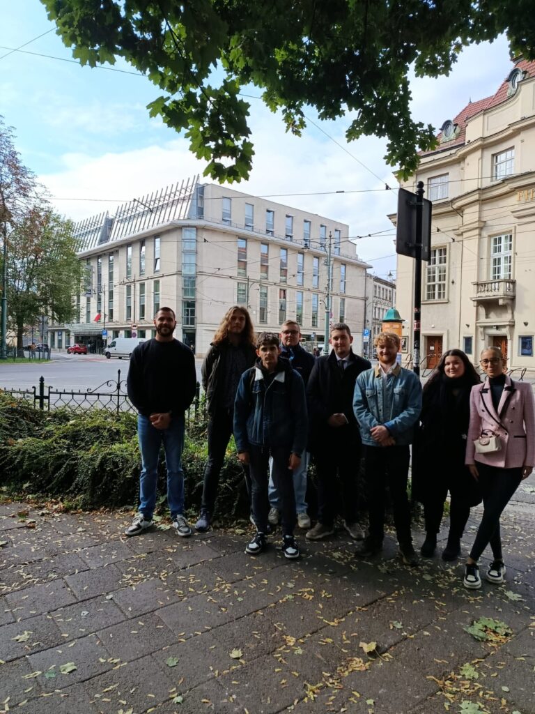 Po dziewięciu intensywnych dniach powoli dobiega końca wymiana uczniowska połączona z praktykami zawodowymi, realizowana we współpracy z naszą szkołą partnerską Philipp-Holzmann-Schule. Projekt pozwolił młodzieży nie tylko zdobyć cenne doświadczenie zawodowe, lecz także rozwinąć kompetencje językowe i społeczne oraz zbudować nowe międzynarodowe przyjaźnie. Uroczyste podsumowanie odbyło się w naszym szkolnym internacie, przy wspólnym poczęstunku. Była to okazja do wymiany wrażeń, wspomnień i podziękowań za wspólnie spędzony czas oraz do wręczenia certyfikatów przez naszą panią Dyrektor. Zwieńczeniem wymiany było oficjalne spotkanie w Urzędzie Miasta Krakowa, podczas którego pan Jerzy Gąsiorowski podkreślił znaczenie współpracy międzynarodowej w kształceniu młodych ludzi oraz wyraził uznanie dla zaangażowania uczniów i nauczycieli. Podczas wizyty mieliśmy również okazję zajrzeć do pięknych wnętrz Pałacu Wielopolskich. Po oficjalnej wizycie w krakowskim magistracie przyszedł czas na kolejny sprawdzian umiejętności komunikacji – grę miejską, podczas której polsko-niemieckie zespoły musiały znaleźć odpowiedzi na ciekawe pytania dotyczące miasta Krakowa. Nagrodą było wejście do Katedry na Wawelu i możliwość dotknięcia serca dzwonu Zygmunta. Udało się! Całe przedsięwzięcie zakończyło się w atmosferze otwartości i wzajemnej życzliwości, a obie strony zadeklarowały chęć kontynuowania współpracy w kolejnych latach. Do zobaczenia we Frankfurcie nad Menem!