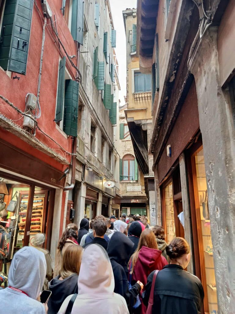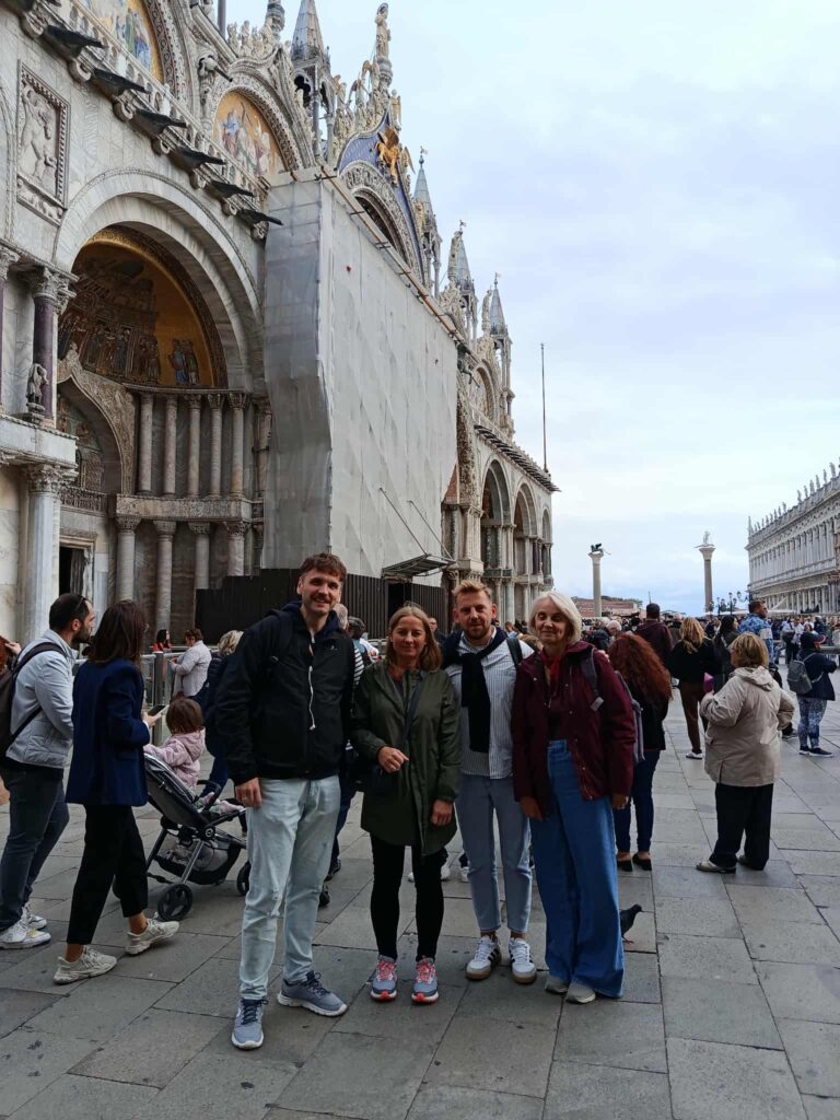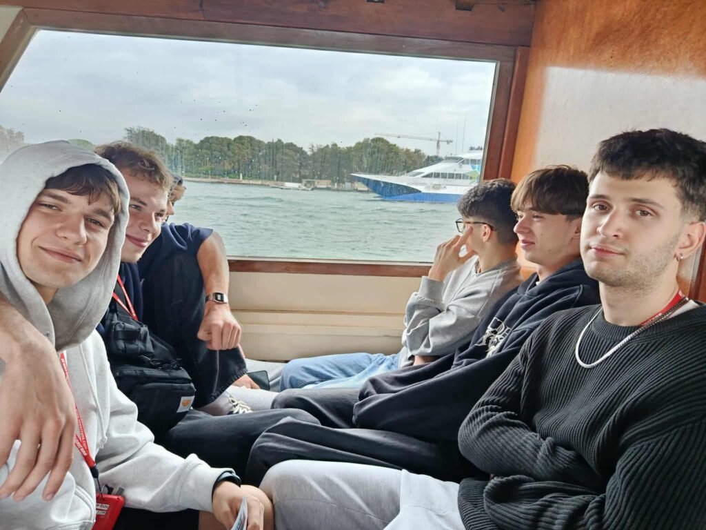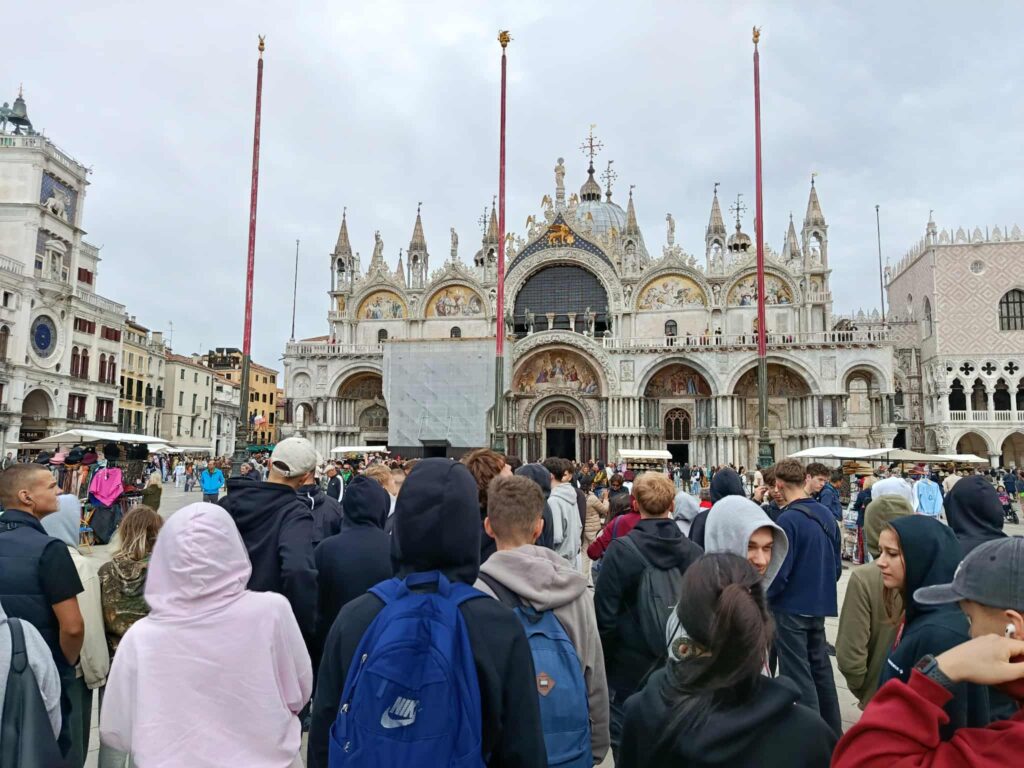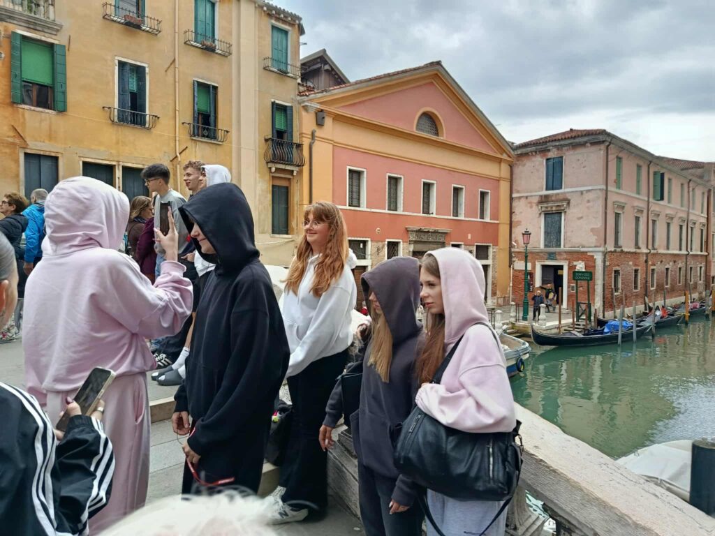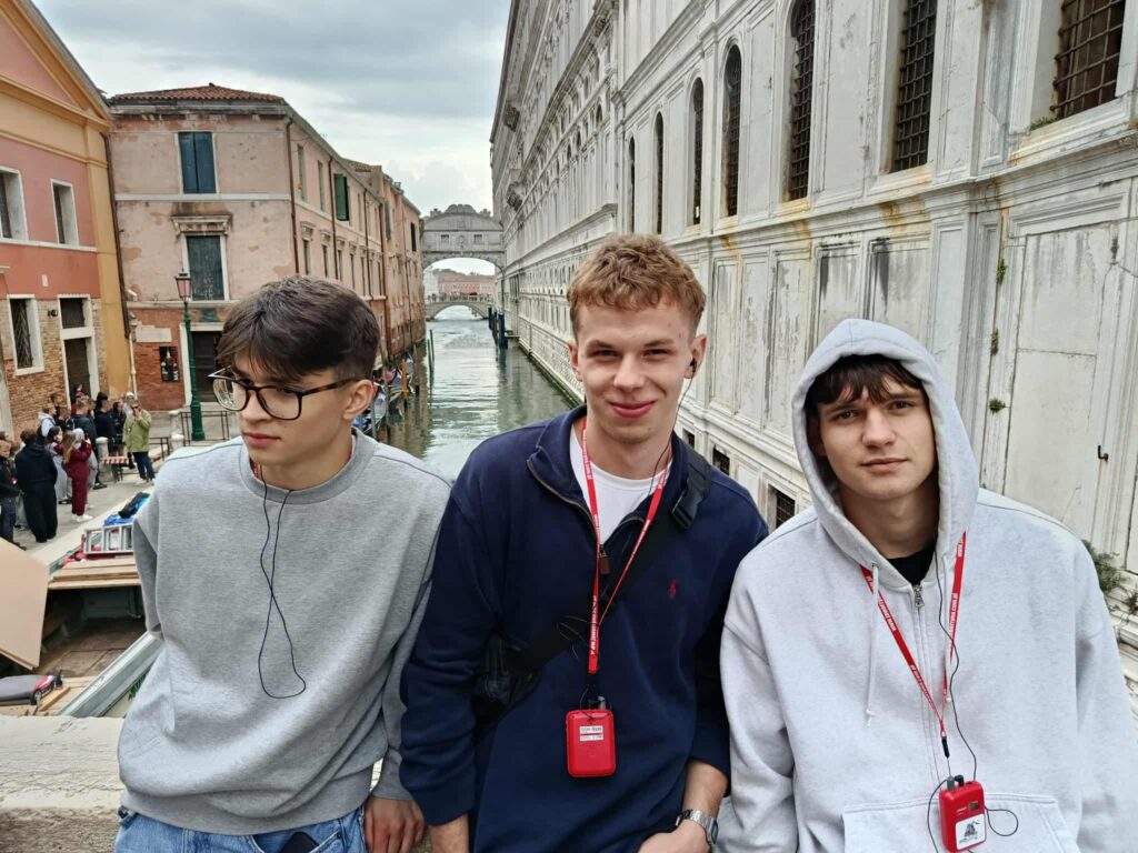 Następnie uczestnicy wycieczki popłynęli promem do historycznego centrum Wenecji, aby zobaczyć jej największe atrakcje. Spacer rozpoczął się na Placu św. Marka – sercu miasta, otoczonym zabytkowymi budowlami. Uczniowie podziwiali majestatyczną Bazylikę św. Marka z bogato zdobioną fasadą oraz imponującą dzwonnicę (Campanile). Podczas spaceru po wąskich uliczkach i licznych mostach Wenecji uczniowie mogli poczuć wyjątkowy klimat tego miasta zbudowanego na wodzie. Zobaczyli także słynny Most Westchnień, Pałac Dożów oraz liczne kanały, po których pływają tradycyjne gondole.
