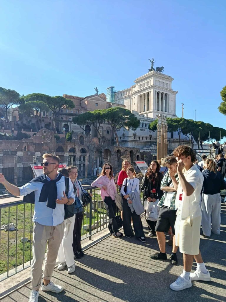 Kolejnymi punktami programu były Forum Romanum i Koloseum – symbole potęgi starożytnego Rzymu. Uczniowie poruszali się po mieście środkami transportu publicznego, m.in. metrem i kolejką, co pozwoliło im lepiej poznać współczesny Rzym.