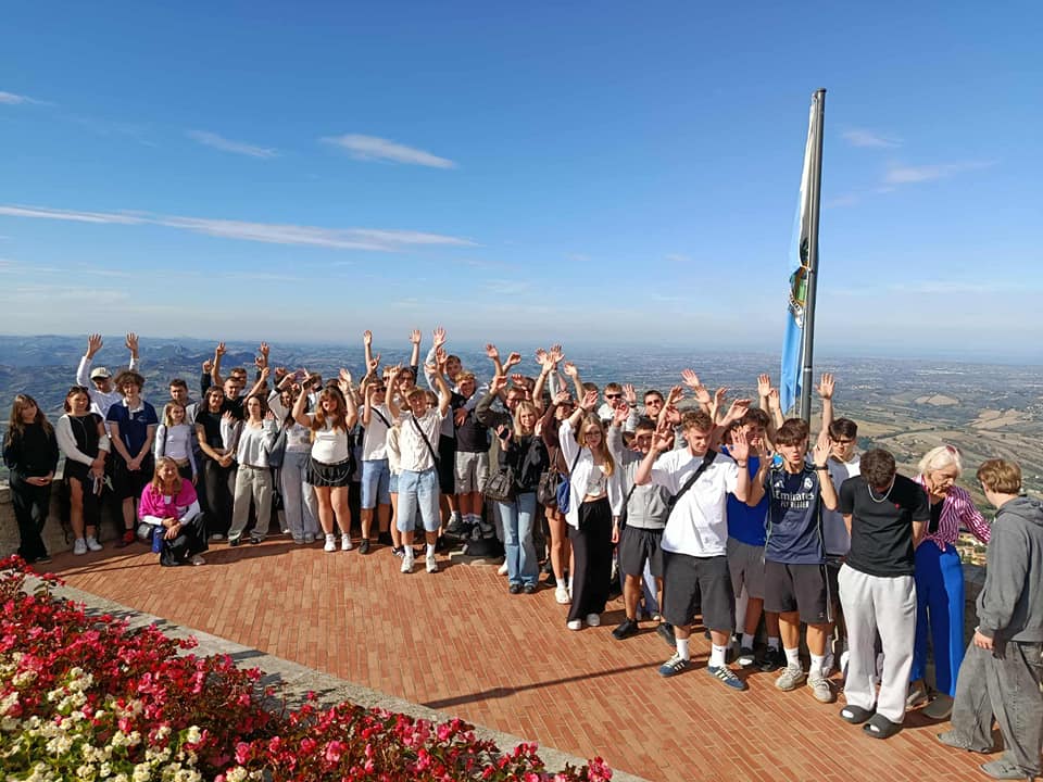 Po południu grupa udała się do Republiki San Marino – jednego z najmniejszych państw Europy. Uczniowie spacerowali po urokliwych, wąskich uliczkach tego górskiego miasta i podziwiali wspaniałe widoki. Nie zabrakło też czasu na zakup pamiątek, które będą przypominały o tej niezwykłej podróży.