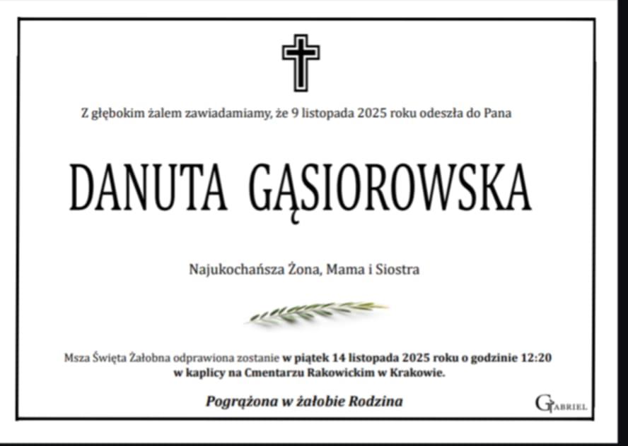z głębokim smutkiem informujemy, że 9 listopada 2025 roku zmarła Pani Danuta Gąsiorowska, wieloletni i zasłużony nauczyciel oraz wicedyrektor Zespołu Szkół Budowlanych nr 1 w Krakowie (obecnie ZSAB). W ZSB nr 1 pracowała od 1983 do 2015 r., a funkcję wicedyrektora pełniła od 1992 do 2011 r.