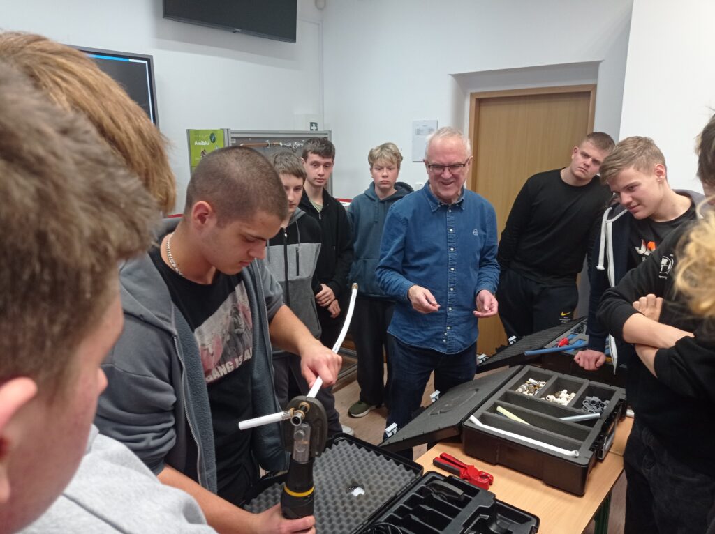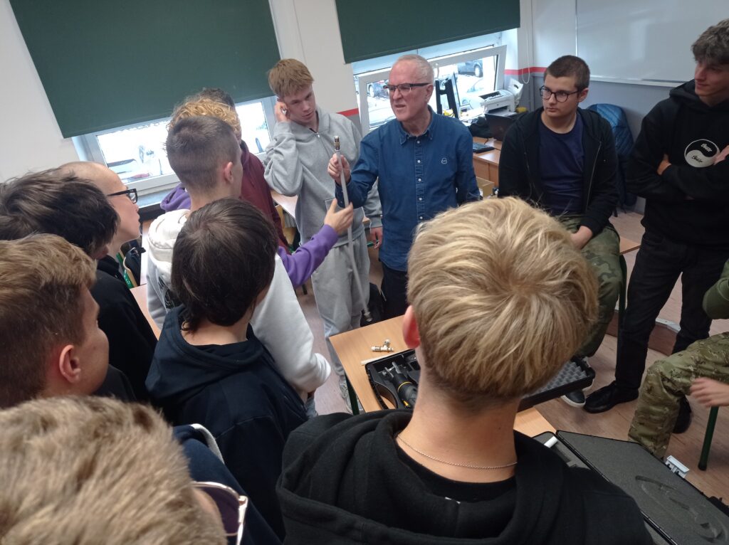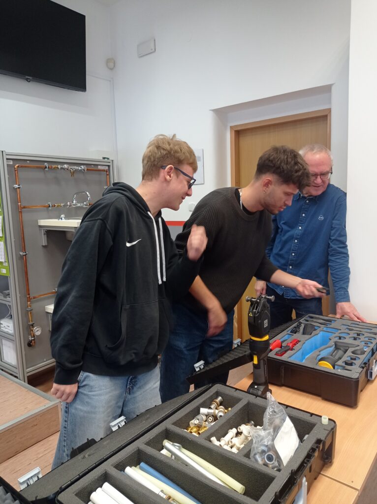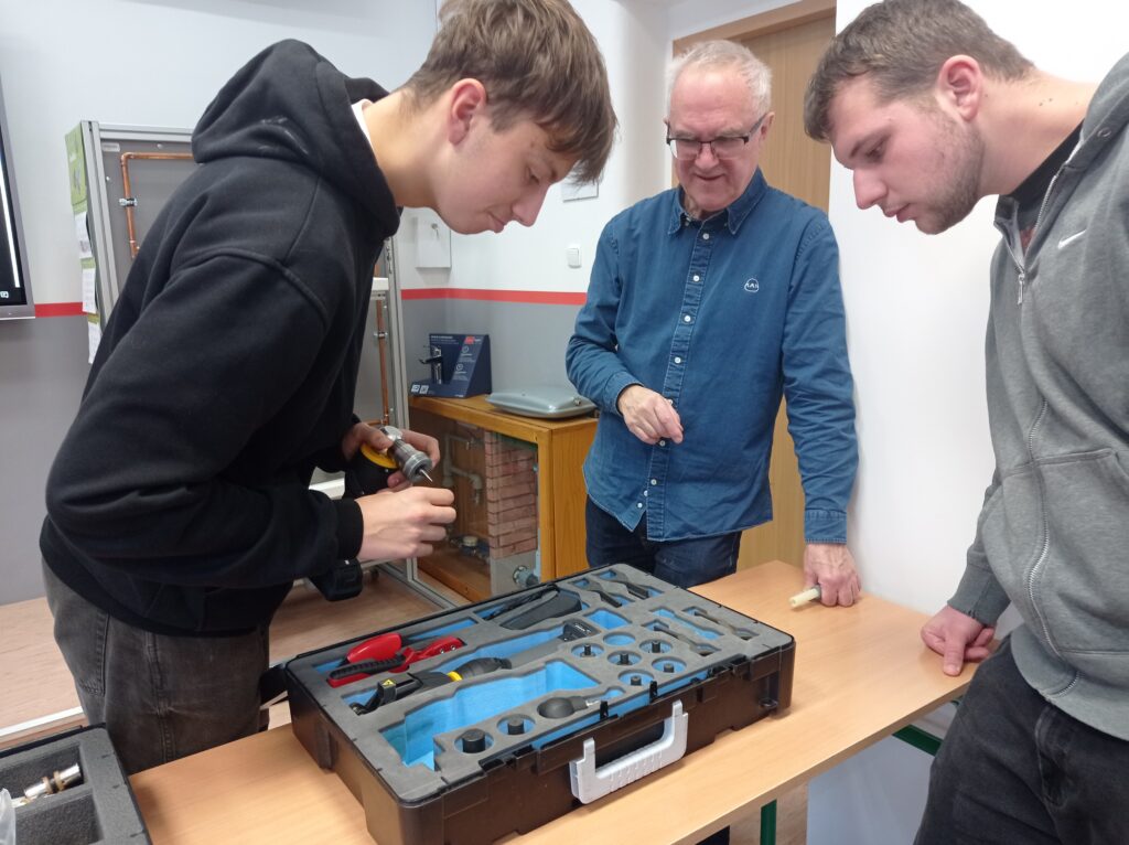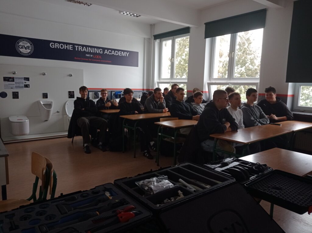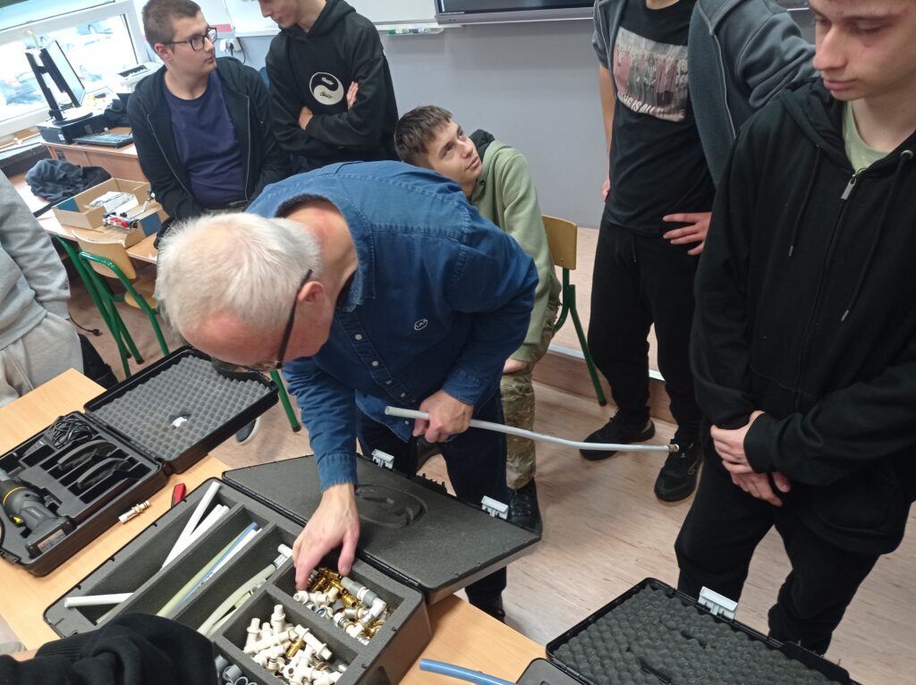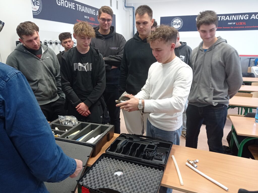 Uczniowie klas o profilu technik inżynierii sanitarnej uczestniczyli w szkoleniu branżowym. Zapoznali się z technologią wykonywania połączeń w nowoczesnych systemach instalacji wodnych i grzewczych systemu KAN-therm. Była teoria jak również praktyka. Takie szkolenia z całą pewnością pozwalają na bieżąco śledzić rynek instalacji sanitarnych oraz dodatkowo pogłębiają wiedzę teoretyczną i praktyczną. Młodzi adepci techniki instalacyjnej już niebawem otrzymają Certyfikaty potwierdzające udział w szkoleniu. Serdeczne podziękowania i pozdrowienia dla Pana Włodzimierza Mroczka, Dyrektora ds. Technicznych za poświęcony czas i ciekawe szkolenie!