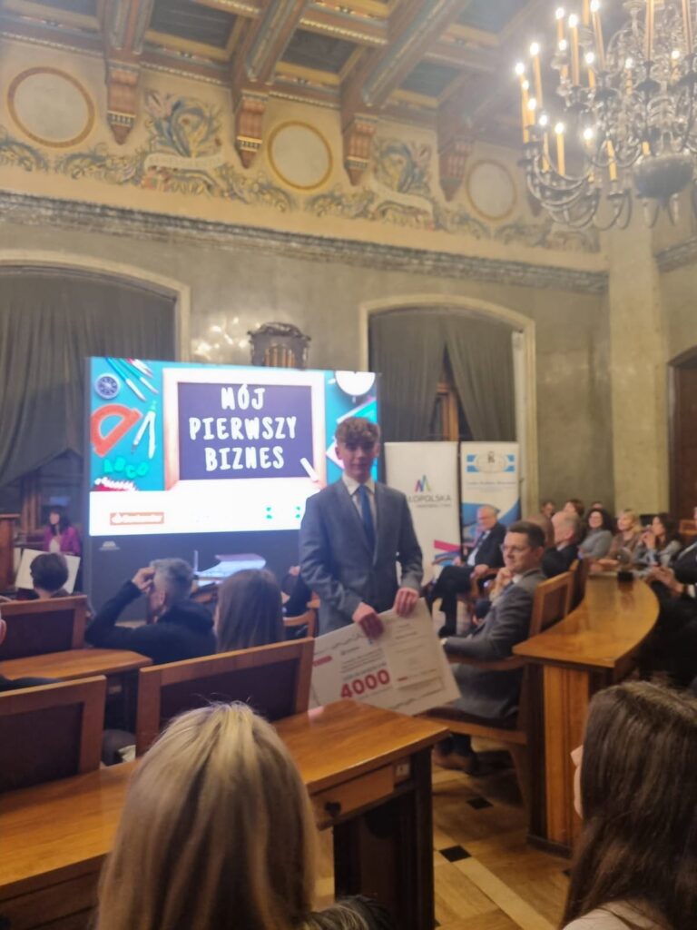 W piątek 28 listopada w UMK odbyła się wielka uroczystość, organizator konkursu „Mój pierwszy biznes” IPH w Krakowie obchodziła 175 lat istnienia. W trakcie uroczystości laureaci konkursu – nasz uczeń Bartek Wroński otrzymali nagrody. Jeszcze raz gratulujemy!