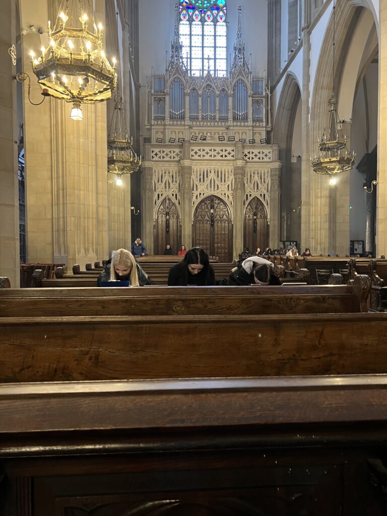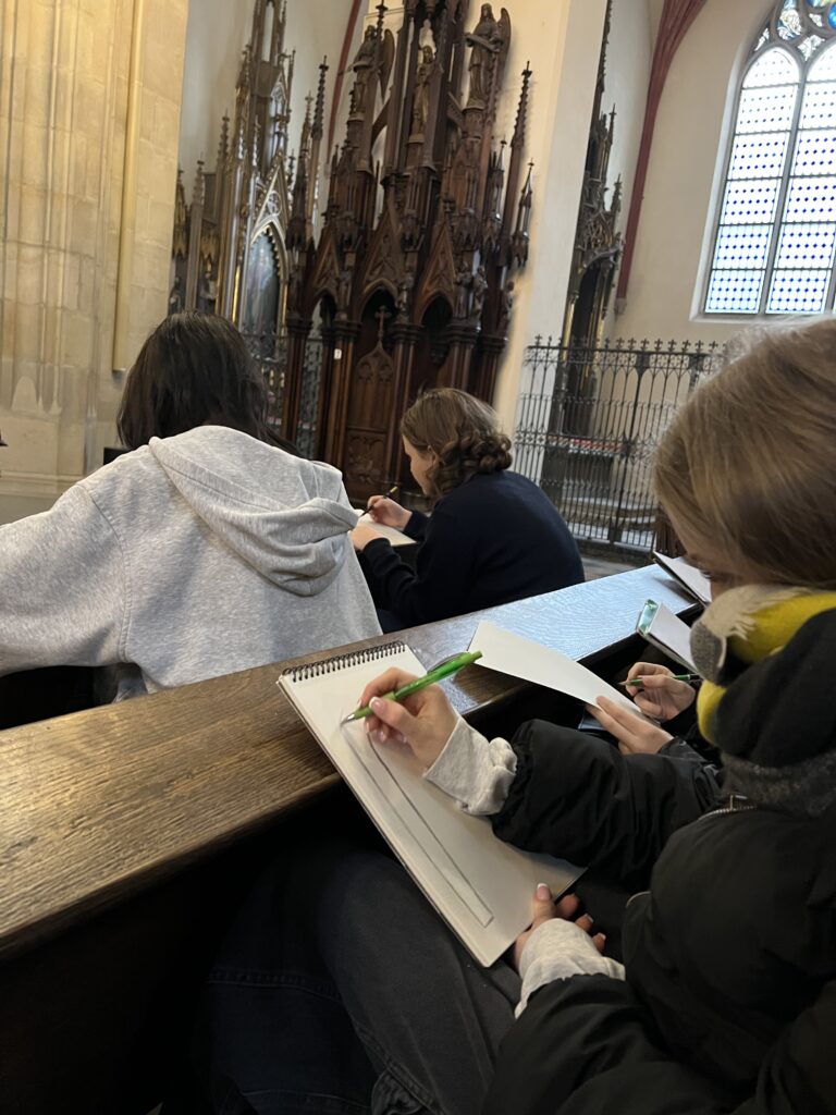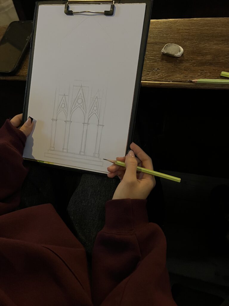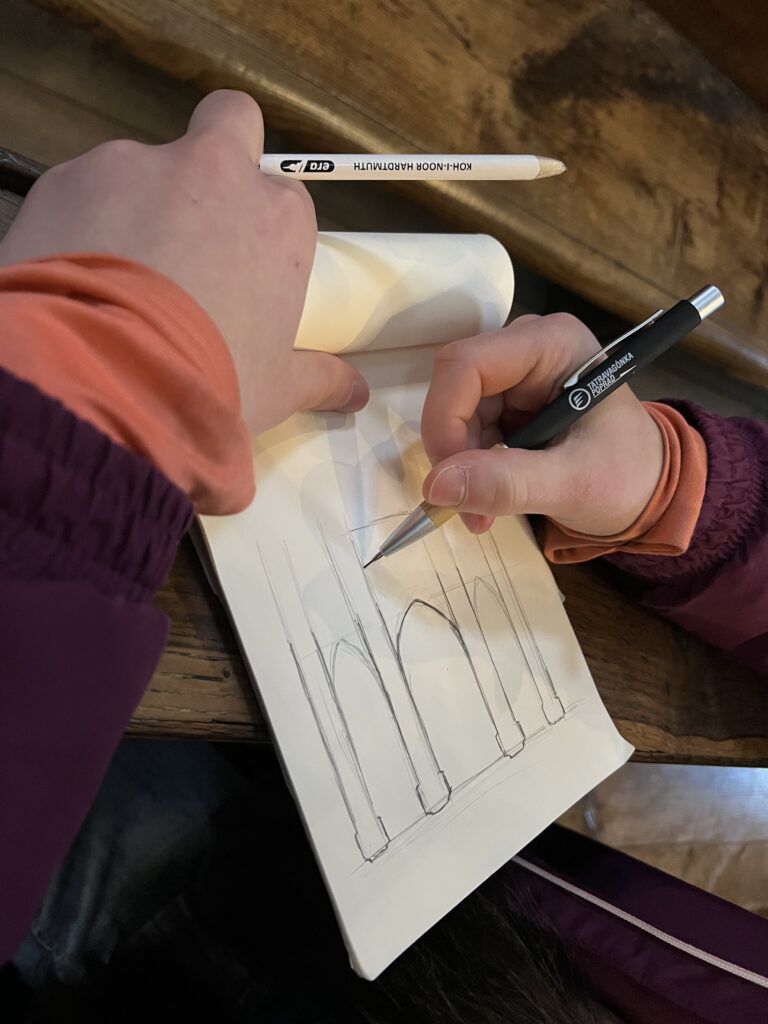 Młodzież z klas 2Aa i 2Ab stanęła w obliczu wielkiej architektury. W ramach lekcji Historii Architektury dotyczących gotyku, odwiedziliśmy kościół Dominikanów w Krakowie, aby w jego wnętrzach rysować z natury detale gotyckie. Odwiedziliśmy również kościół Franciszkanów, aby podziwiać polichromie i witraże Stanisława Wyspiańskiego, jak również zaglądnęliśmy do Pawilonu Wyspiańskiego, aby obejrzeć witraże projektu tego artysty.