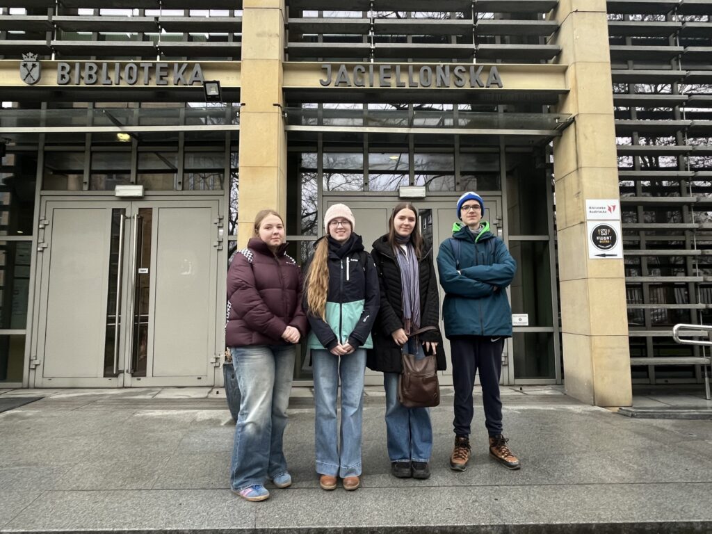 W Biblioteka Jagiellońska mieliśmy okazję podziwiać piękne wnętrza gmachu oraz zapoznać się z bogatym księgozbiorem austriackim. Na koniec zwiedzania zostaliśmy obdarowani atrakcyjnymi upominkami. Wierzymy, że to właśnie tutaj nasi śmiałkowie będą rozwijać i pogłębiać swoją wiedzę przed kolejnymi etapami konkursowych zmagań.