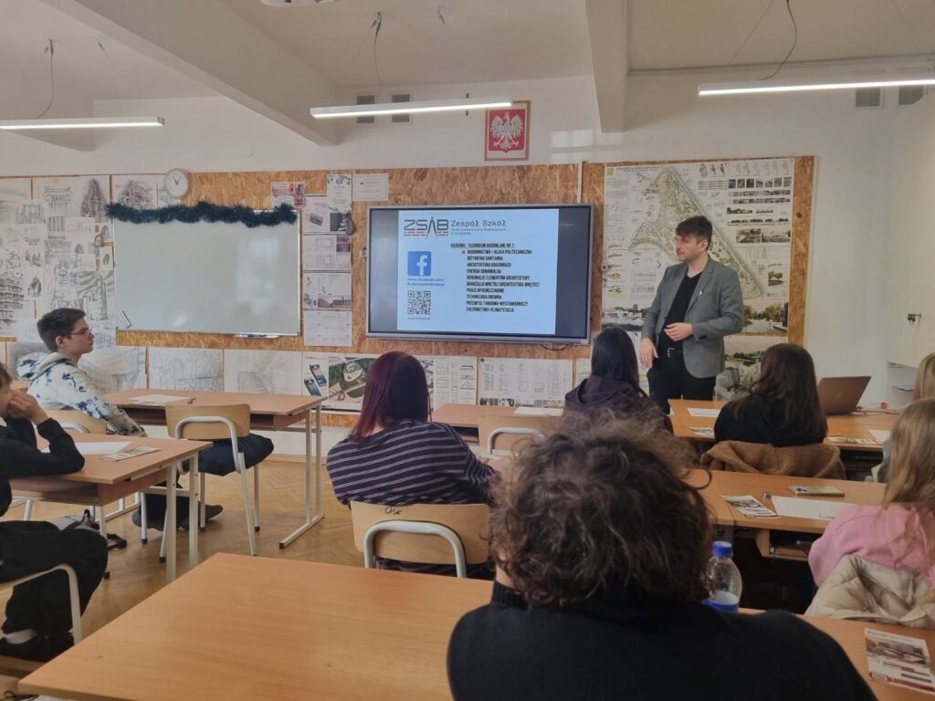 Dzisiaj 4 marca 2026r. odwiedzili nas uczniowie ze SP nr 40 w ramach projektu Rajd po fach. Warsztaty z projektowania architektonicznego cieszą się dużym powodzeniem! Zapraszamy!
