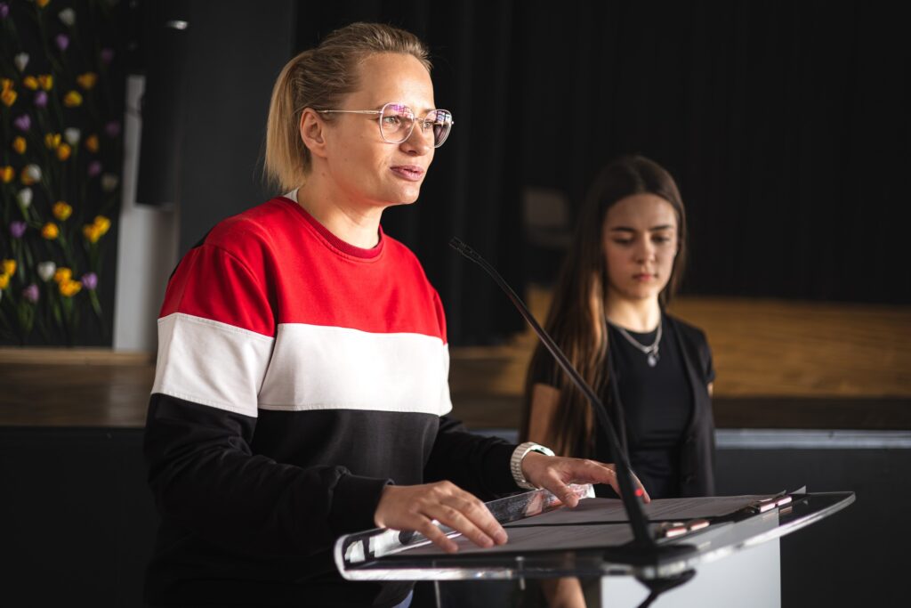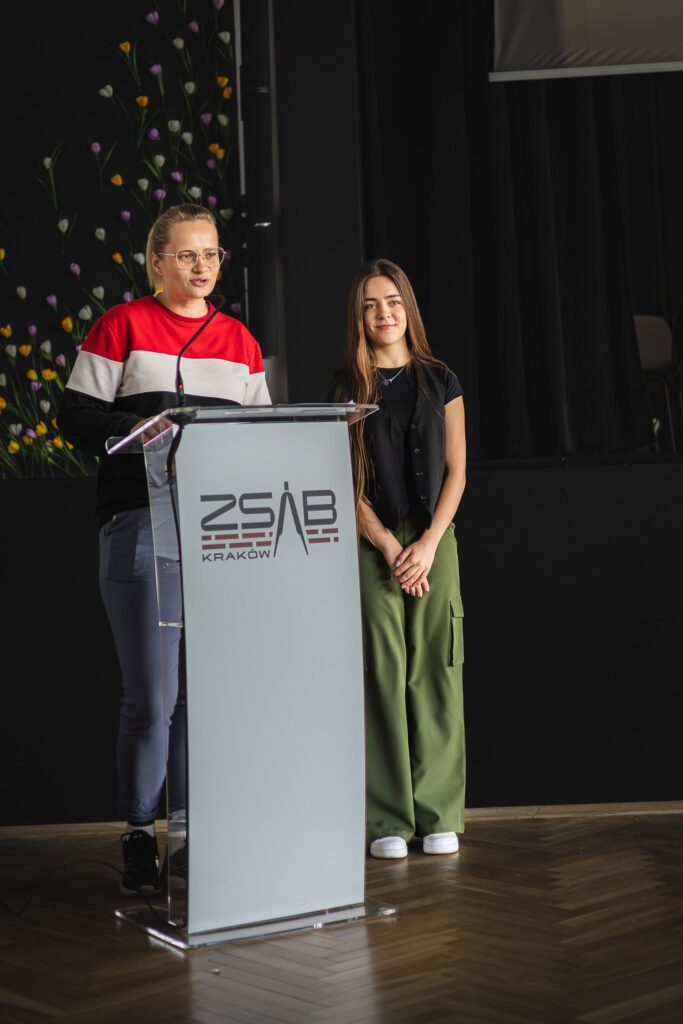 W tym wyjątkowym dniu społeczności szkolnej zostały również przedstawione Rzeczniczki Praw Ucznia: z ramienia grona pedagogicznego – p. Agnieszka Ostawińska – nauczycielka WF oraz Alicja Kabała – uczennica klasy III Aa.