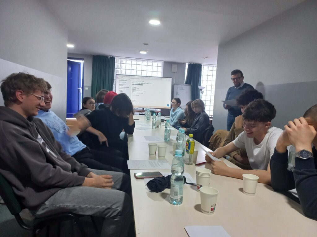 26 marca, w ramach projektu „Uczeń – Obywatel”, uczniowie klasy 3K odwiedzili siedzibę Rady Dzielnicy VI Bronowice, gdzie niezwykle serdecznie ugościł nas Pan Adam Goch, Przewodniczący Zarządu. W bardzo przystępny i angażujący sposób opowiedział o harmonogramie i strukturze budżetu dzielnicy, a także o wyzwaniach związanych z realizacją projektów poprawiających jakość życia mieszkańców. Nie zabrakło również osobistych doświadczeń z pracy w samorządzie – a wszystko to w atmosferze otwartości i świetnego kontaktu z młodzieżą. Po części wprowadzającej przyszedł czas na praktykę! Uczniowie wcielili się w rolę członków Rady, tworząc własne projekty uchwał, odpowiadające na realne problemy lokalnej społeczności. Były pomysły, była kreatywność, było zaangażowanie – a przede wszystkim konieczność przekonującego uzasadnienia swoich propozycji i zaprezentowania ich na forum. Warsztaty poprowadził Pan Artur Jachna z Centrum Młodzieży im. Henryka Jordana, dbając o świetną atmosferę i sporą dawkę dobrej energii. To była nie tylko cenna lekcja obywatelskości, ale też prawdziwa frajda ze wspólnej pracy!