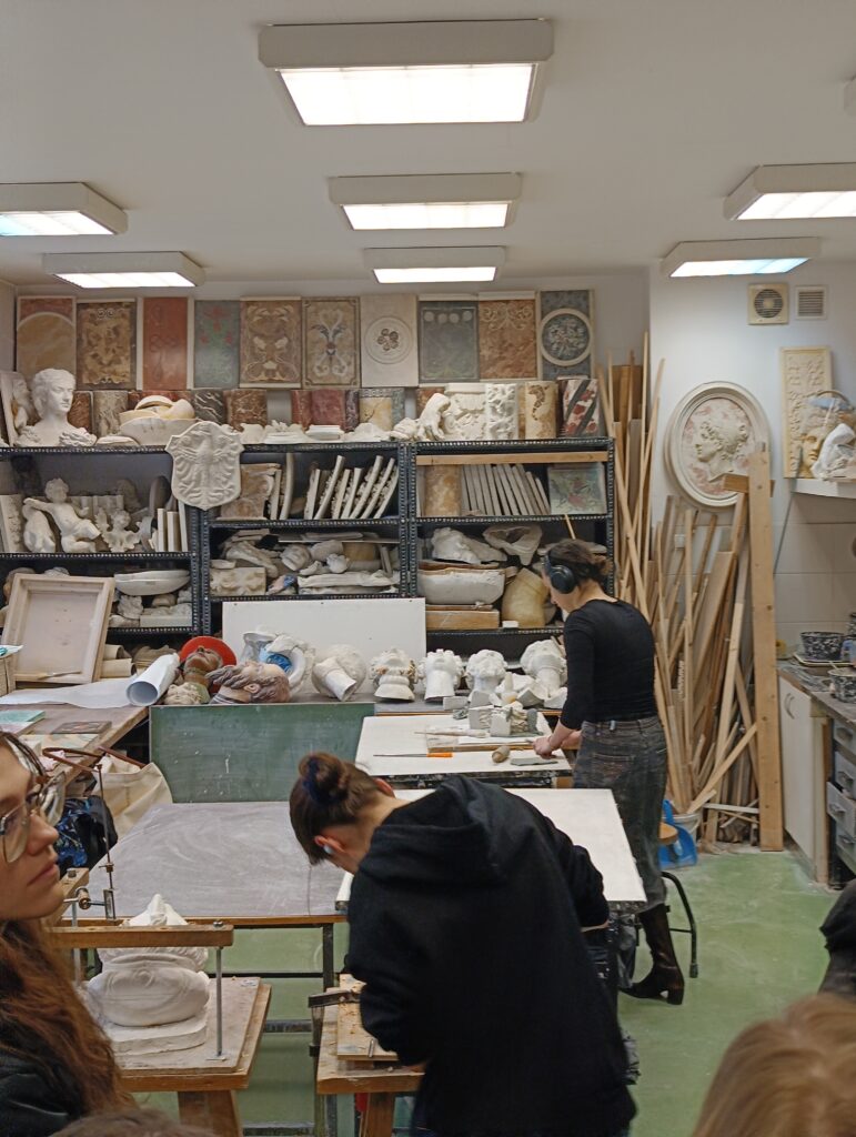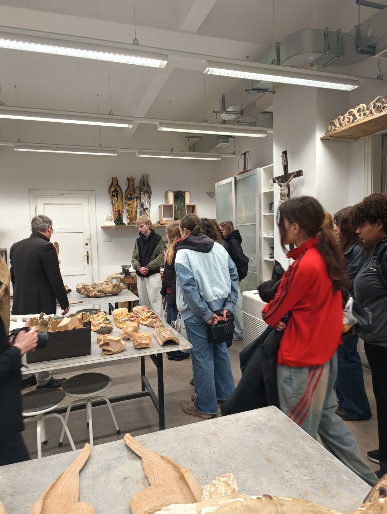 27.03.2026r. klasa III renowacji zabytków spędziła dzień na ASP na w Wydziale Konserwacji i Restauracji Dzieł Sztuki. Mieliśmy możliwość zwiedzić specjalistyczne Pracownie Konserwacji Malarstwa Sztalugowego, Konserwacji Rzeźby, Konserwacji Malowideł na Podłożu Papierowym oraz pracownię Fizykochemiczną. Zwiedziliśmy również pracownie Katedry Technologii i Technik Dzieł Sztuki, Katedrę Sztuk Pięknych, Pracownię Malowideł Ściennych oraz Pracownię Sztuki Współczesnej. To niezwykłe doświadczenie, bezpośredni kontakt z konserwatorami dzieł sztuki i studentami akademii pozwoliło uczniom realnie spojrzeć na swój przyszły zawód, poszerzyć wiedzę uczniów na temat ochrony dziedzictwa kulturowego.