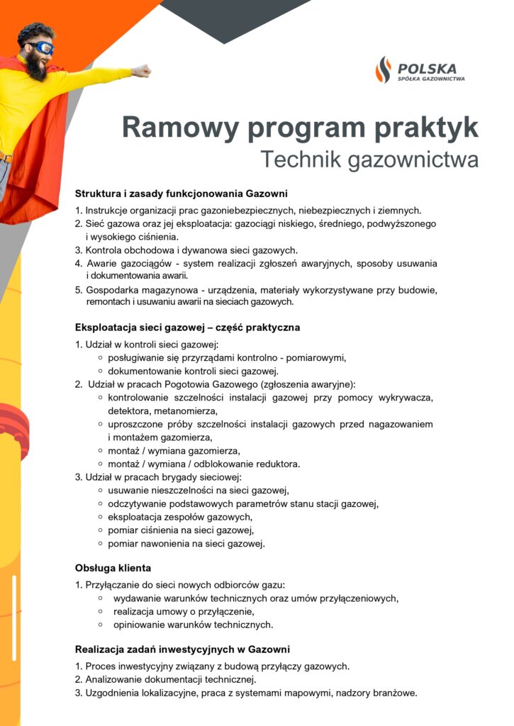 Zdobądź razem z nami doświadczenie !! Zapraszamy uczniów naszej placówki będących na kierunku technik inżynierii sanitarnej do udziału w płatnych praktykach organizowanych przez firmę Polska Spółka Gazownictwa. Wszystkie zainteresowane osoby prosimy o bezpośredni kontakt lub przez dziennik elektroniczny z Panią mgr inż. Karolina Goryczka do dnia 09.04.2026r.