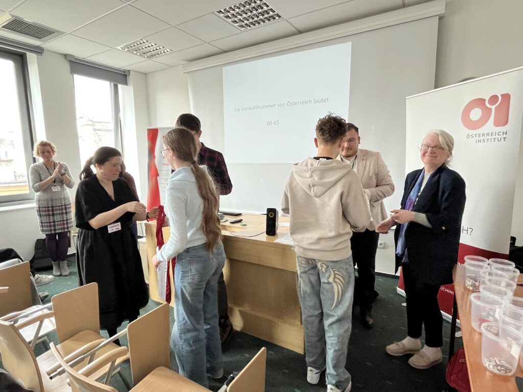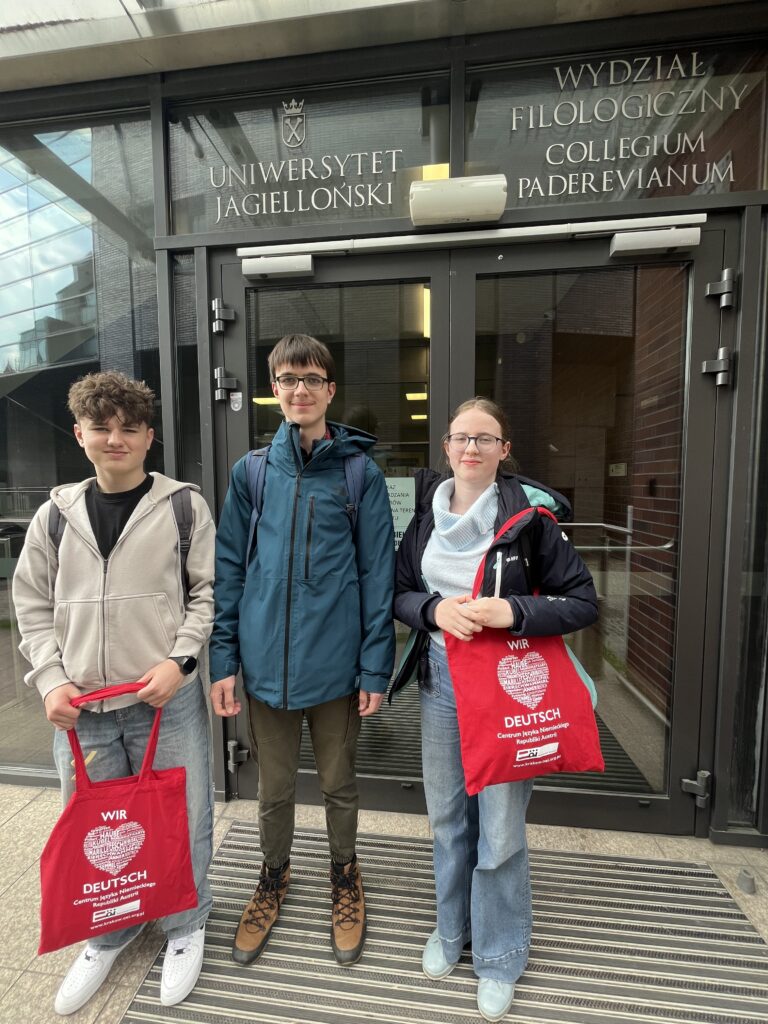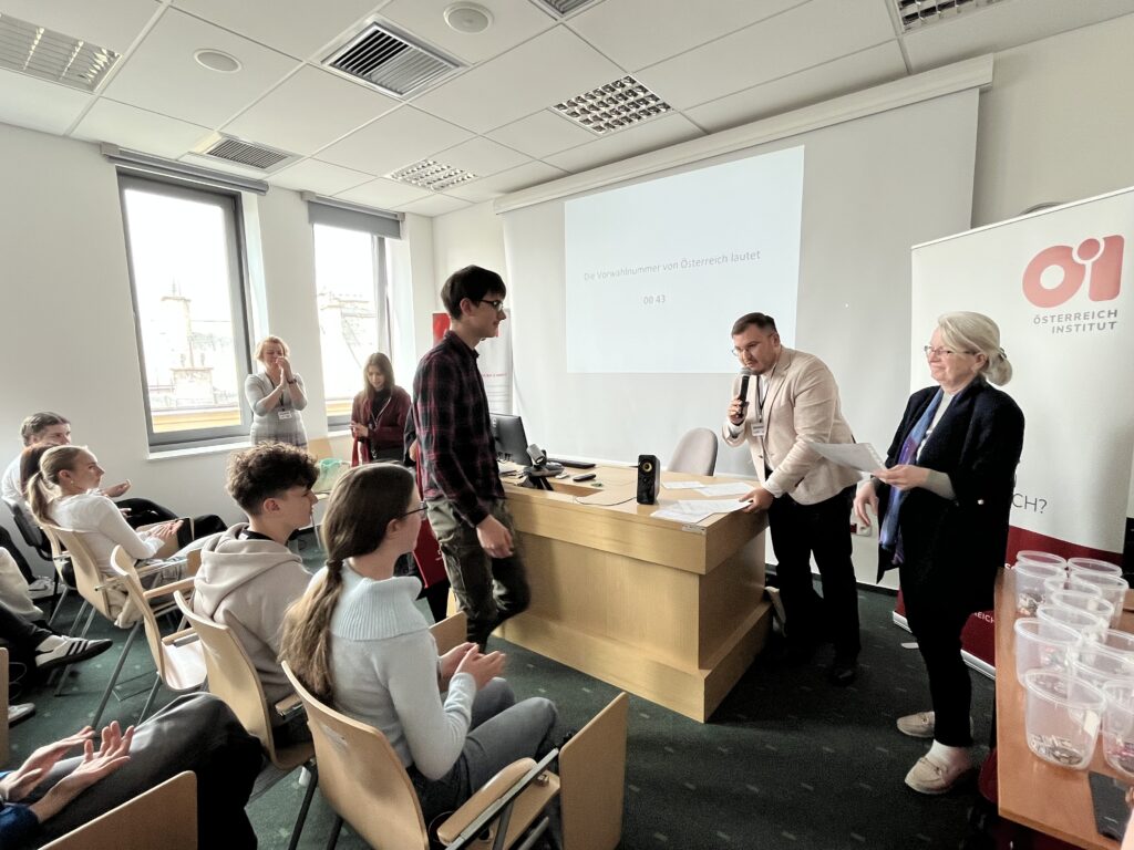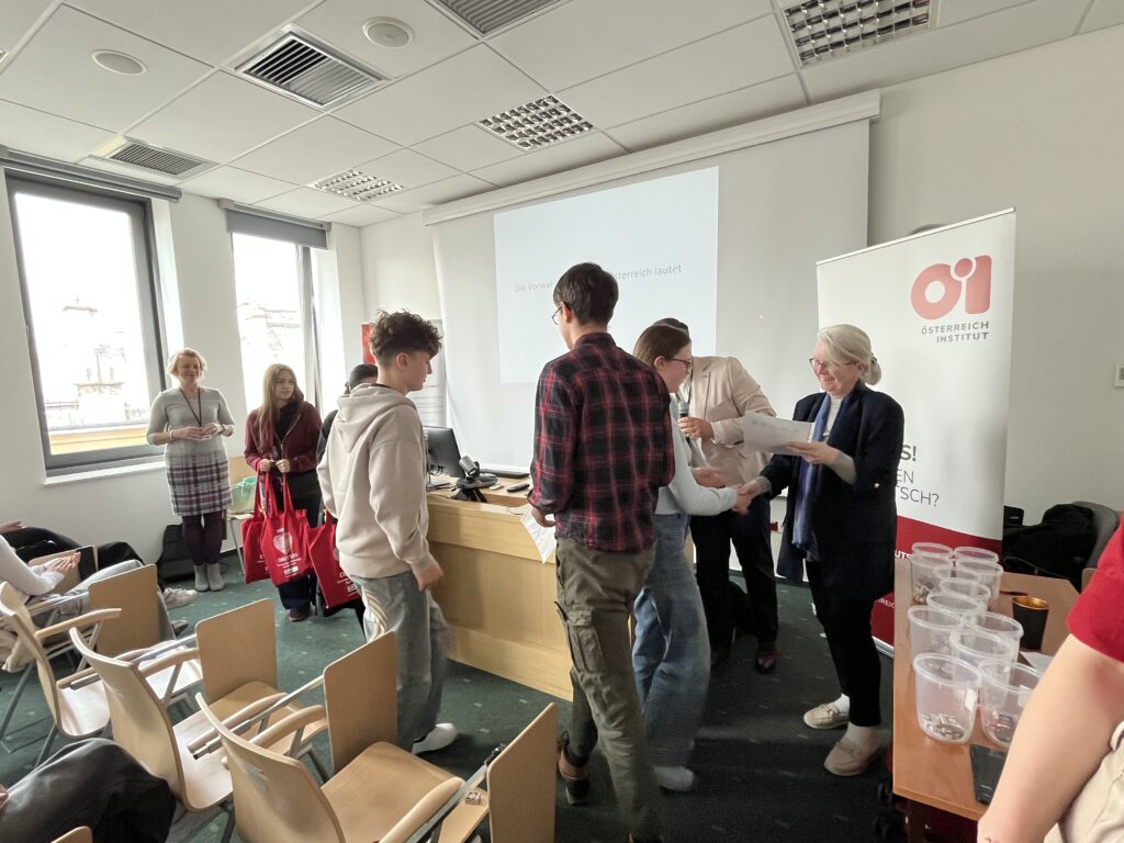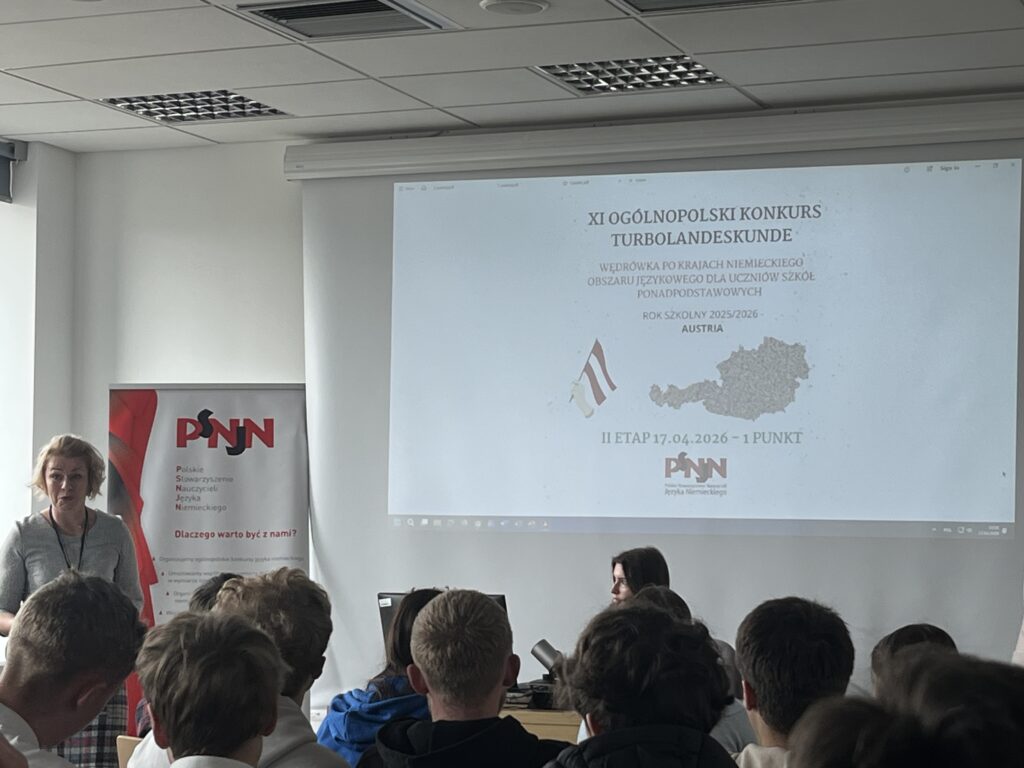 Etap regionalny XI austriackiej edycji ogólnopolskiego konkursu „Turbolandeskunde – wędrówka po krajach niemieckiego obszaru językowego” już za nami. Nasza drużyna w składzie Sophie Valentin, Kevin Makusek i Vincent Valentin zajęła I miejsce spośród 13 zespołów z regionu, dzięki czemu będzie reprezentować nasz region w ogólnopolskim finale, który odbędzie się 31 maja w Goethe-Institut Krakau.
