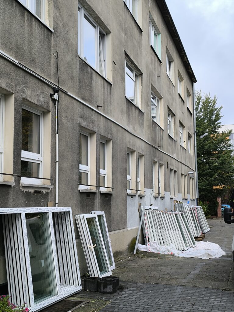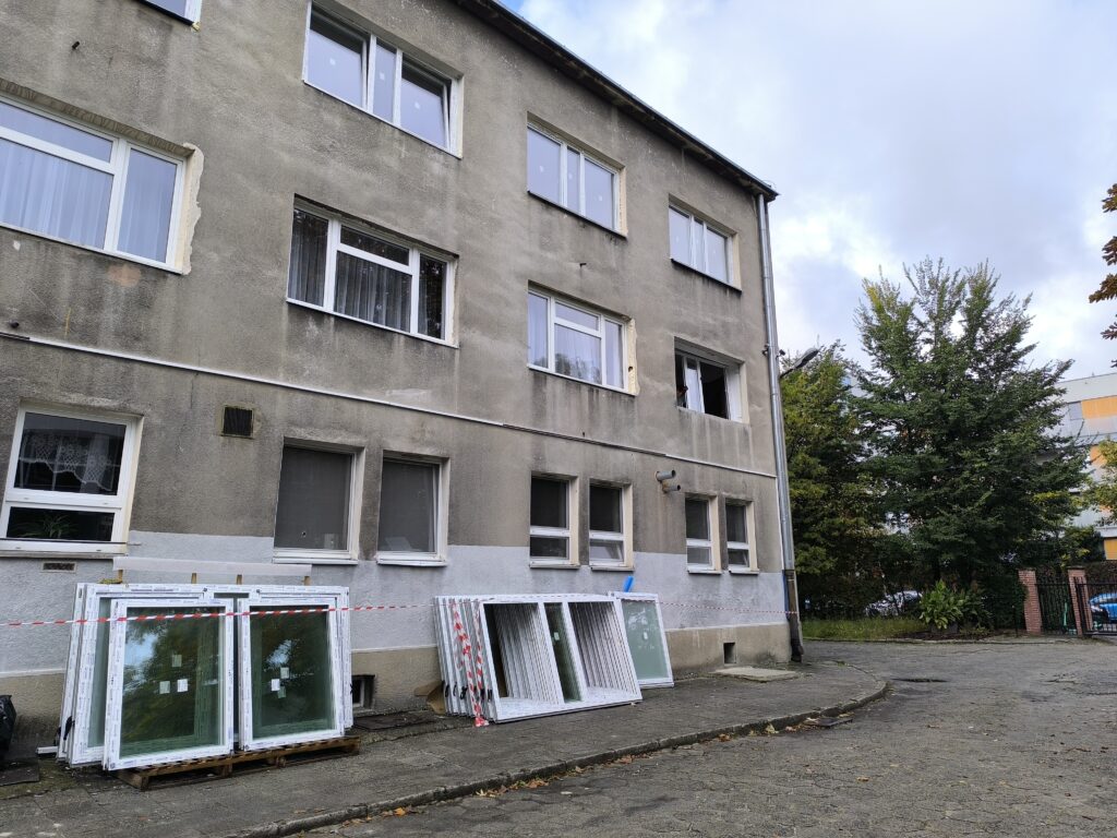 W budynku została wymieniona stolarka okienna i wykonywane będą prace związane z termomodernizacją budynku.